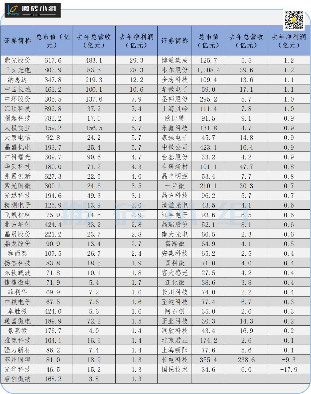 整体来看,67家半导体概念公司当前总市值1.36万亿,去年实现总营收2424亿元,取得的总净利润规模让小组相当吃惊: