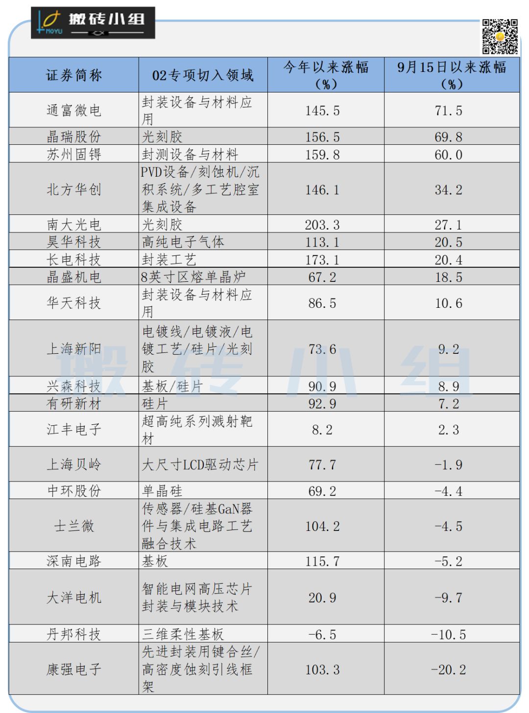 今天大伙熟悉的半导体核心概念股,比如北方华创、比如上海新阳、比如通富微电,比如苏州固锝,很多都是在02专项里成长起来,做大做强的。所以小组才会反复强调这一条线,这是中国半导体行业的一条脊梁,我们能直起腰来说话的底气。