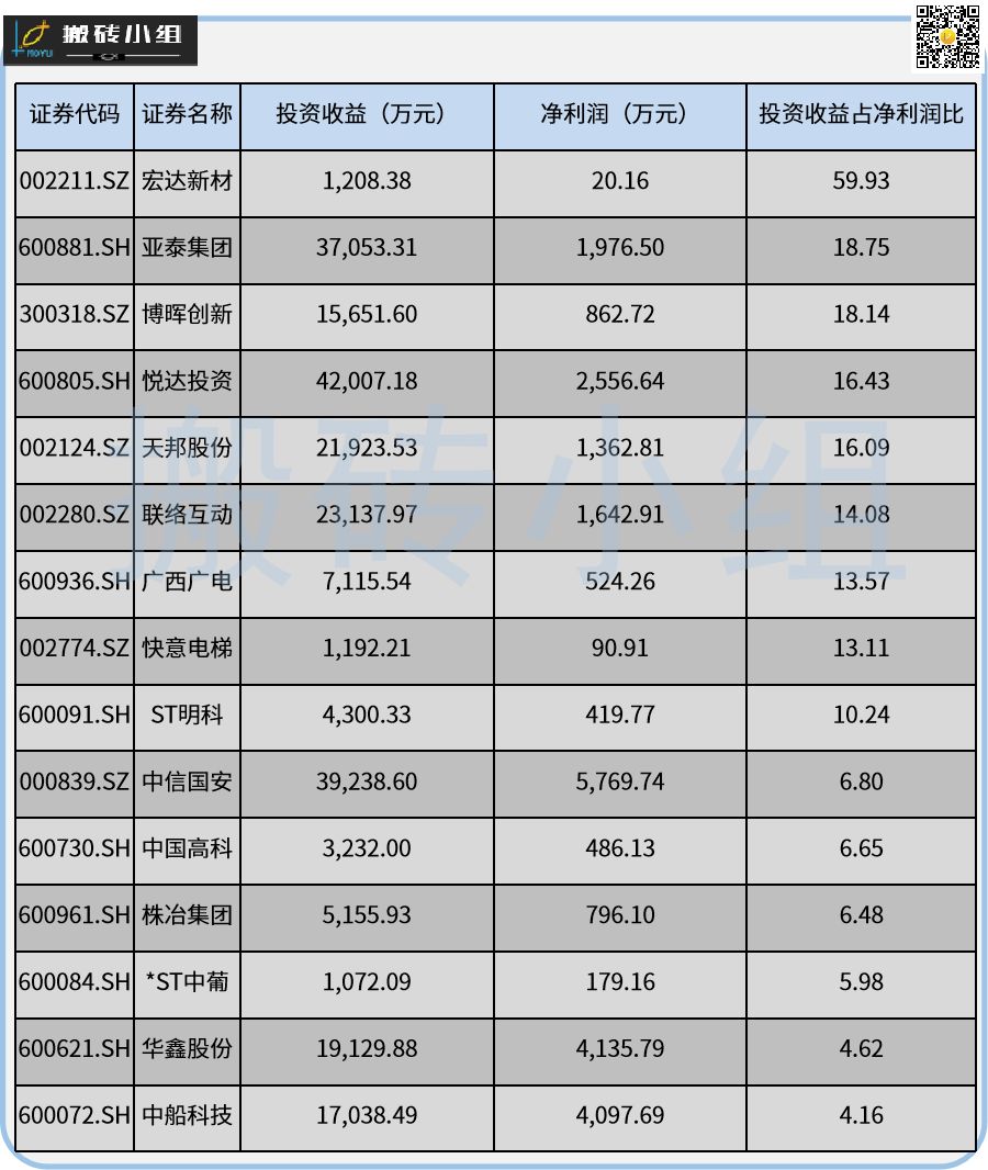 其实这样的公司在A股中其实一大把,拉了下投资收益和净利润的比值,大家可以感受一下?:
