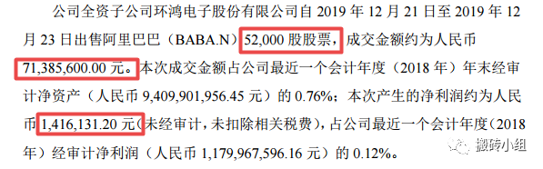 上市公司激动万分,立马一顿操作解套走人。在2019年12月21日至2019年12月23日的三个交易日,清仓抛售了所有的阿里股票。
