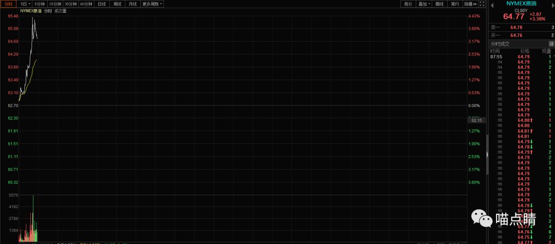 8、外面的那些个大佬貌似又搞事情了,今天一大早原油和黄金纷纷大涨,截至发文NYMEX原油涨幅超过3%,国际金价涨到1.4%,小伙伴们要注意下。。