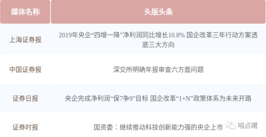 a.2019年央企累计实现净利润1.3万亿元,同比增长10.8%;b.67家企业已经完成向社保划转股权,划转国资1.1万亿。