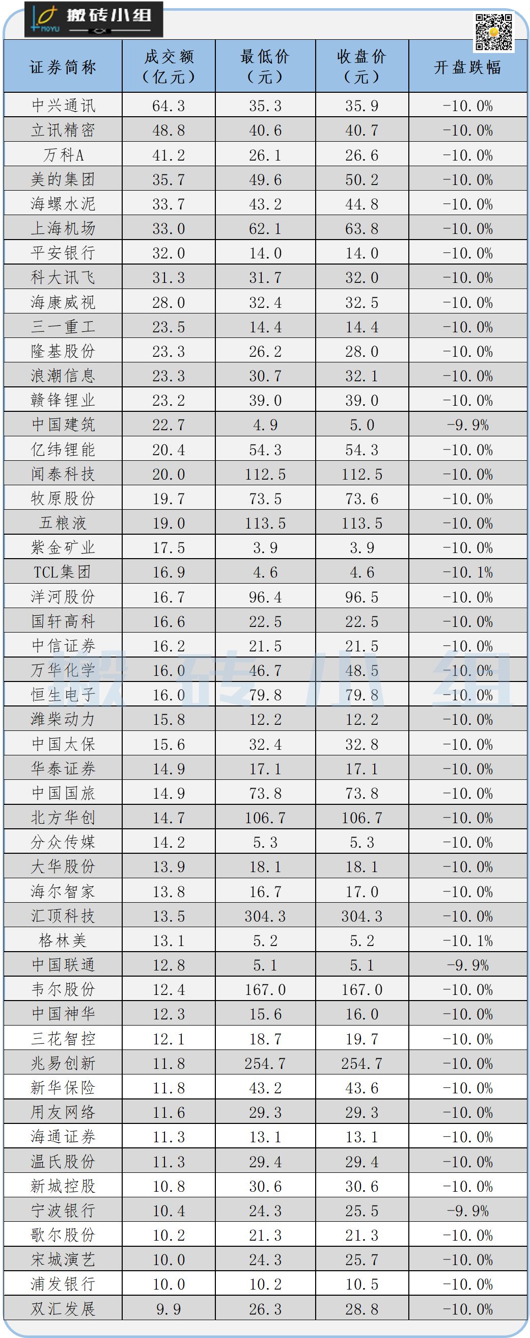 前50家成交一共972亿,这些资金的道理就是管你跌停不跌停,这盘子我翘了。