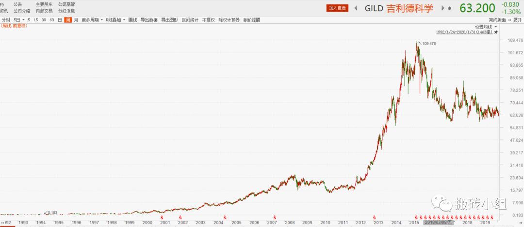 吉利德从这一刻开始,终于真正进入了实业的良性循环,陆续打造了自己的产品线。烧了十几年,终于烧出了一片天。公司股价也随之一路上扬。