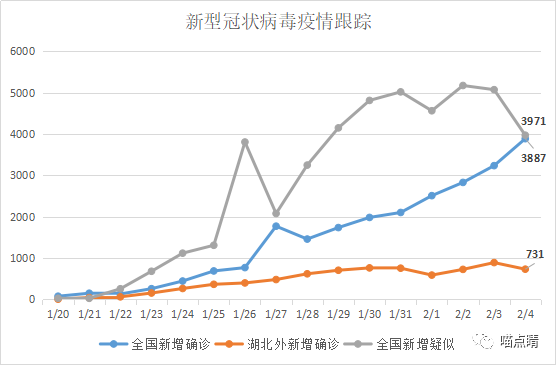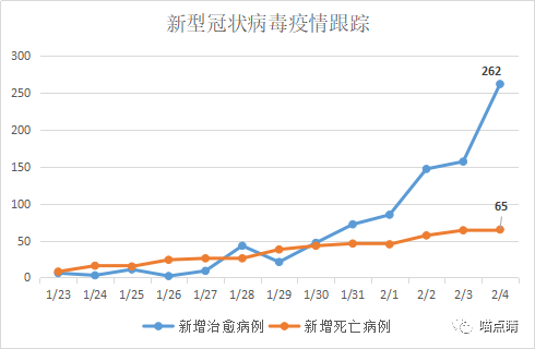 小灰线向下掉头了!上图可以看出,全国新增疑似出现了明显的下滑,几乎和新增确诊的数量一致了,这是一个很正面的前瞻信号,从图形看很像技术形态中,顶背离后下杀造成的双头。另外新增治愈的小蓝线也在不断上冲。