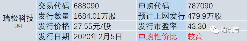 科创板公司瑞松科技主营业务是机器人与智能制造领域的研发、设计、制造、应用、销售和服务,预计19年业绩小幅增长,公司市盈率低于可比公司均值,有申购价值。