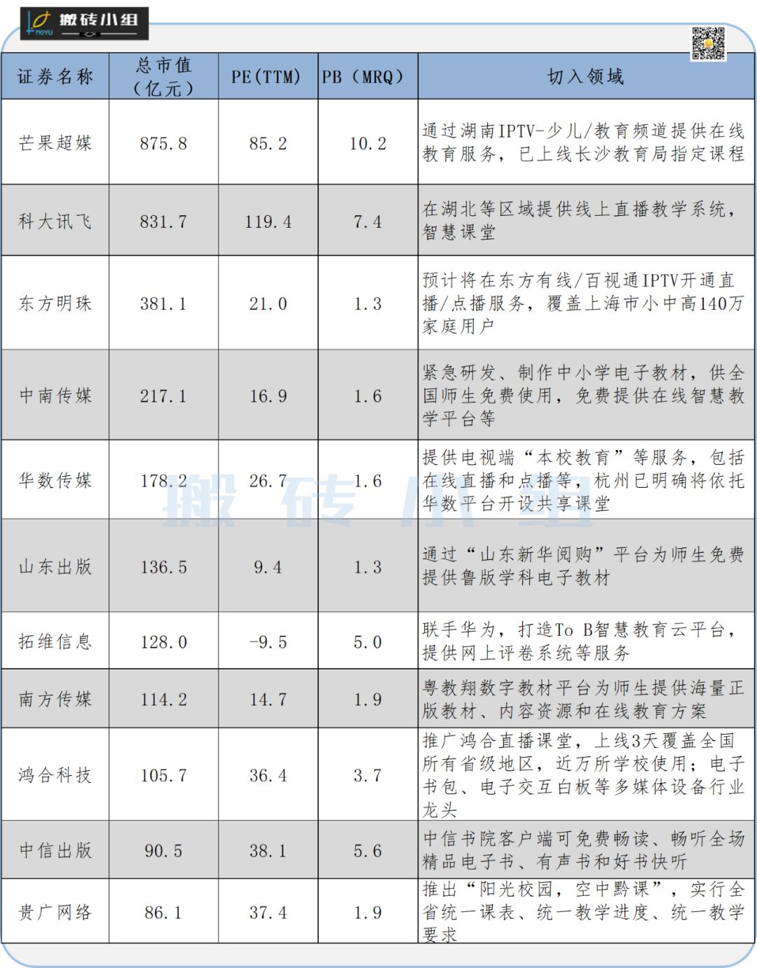 对这次明确参与“停课不停教,停课不停学”的有关上市公司,以及市场比较关注的在线教育概念股,小组把他们具体的在线教育业务模式和参与的角度做了个整理,小组做了个整理,结果如下?:
