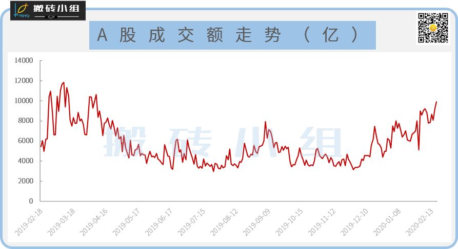 基金发行火爆,场外资金不断流入,直接的表现就是市场的交投十分的活跃,最近的成交量比春节前上了一个台阶,尤其是在今天,两市成交接近万亿,创下了年内成交量新高!