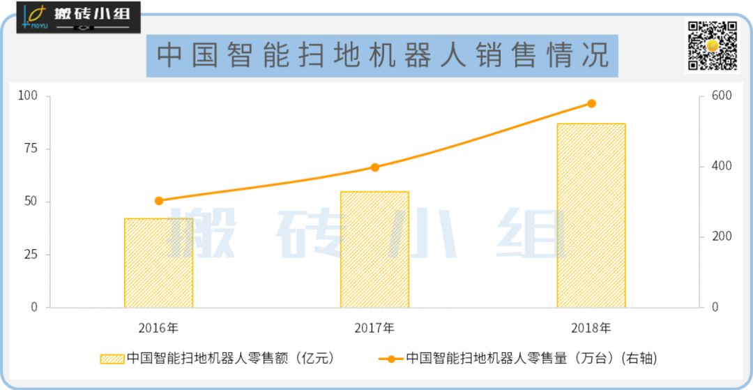 根据中怡康测算,2018年国内智能扫地机器人销售额达到 86.6 亿元,零售量达到577万台。而2019有机构预测,全球(除中国)扫地机零售额有望达到80亿美元左右,而扫地机市场红利最为突出的国家将是吸尘器保有量较高的发达国家,以及人口基数大且普及率快速提升的中国,国内外同处爆发期。