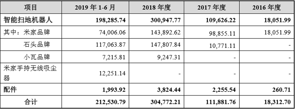 作为钟爱扫地机器人的石头科技,旗下主要产品有“米家智能扫地机器人”、“米家手持无线吸尘器”、“石头智能扫地机器人”和“小瓦智能扫地机器人”。这些产品贡献了几乎100%的营收,可以说是非常专一了。