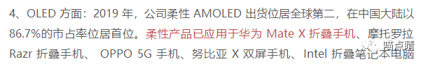 今年各大手机厂都陆续推出自己的折叠屏手机,颇有放量元年的感觉。上证报记者获悉,此次华为折叠屏的独家供应商是京东方A,其实不该感到意外,我们上周对京东方调研的解析中特意摘出了这个要点,如下图: