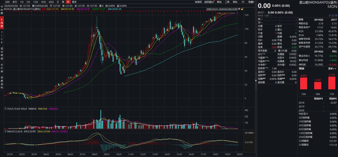 而资本市场上其实对转基因作物也有很大追捧,转基因最大的牛股就是美国的孟山都,从02年到08年涨幅达到了20倍,而这公司最终在2018年被拜耳收购了。