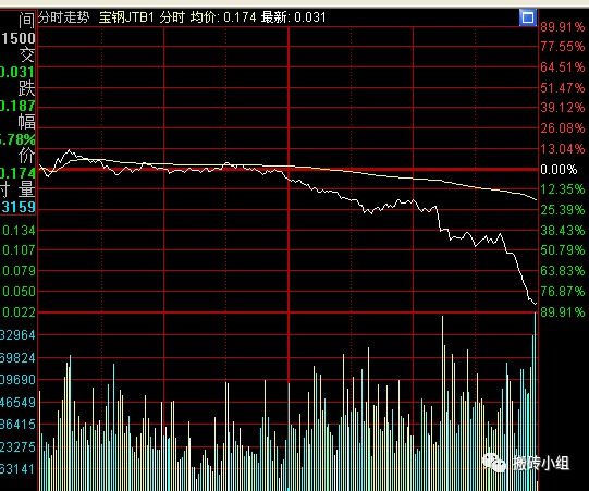 但这最后一日显然不太平,“末日轮”行情再度上演。这一天宝钢JTB1盘中换手率达到了惊人的1164.77%,盘中最高涨至0.24元,随后便一路下探,最终收于0.031元,狂跌85.78%。权证沦为废纸一张。想想这里面的进进出出,那都是白骨累累。