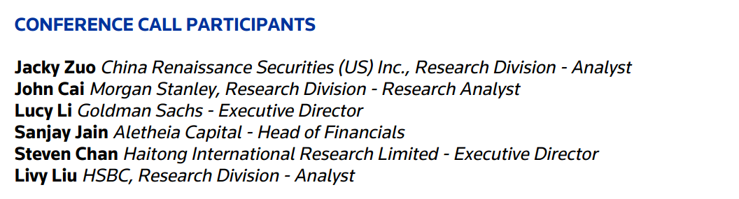 在看趣店的年报电话会议的时候,第一个有趣的地方就是:来的机构多数是中国机构或者外资机构里面的华人,这从名字就能看出来。