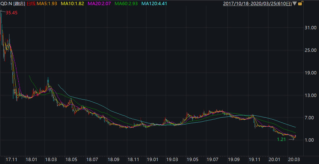 在2018年时,趣店的CEO罗敏曾表示公司市值不到1000亿美元,就不从公司拿薪水。你没看错,是1000亿美元。而现在公司市值不到10亿美元。