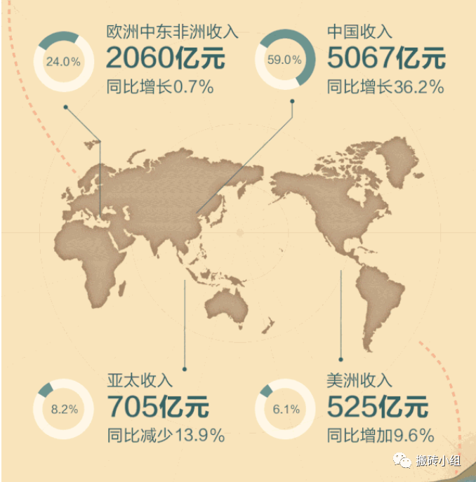 再次亚太收入705亿,同比-13.9%;美洲收入525亿,同比反而+9.6%。