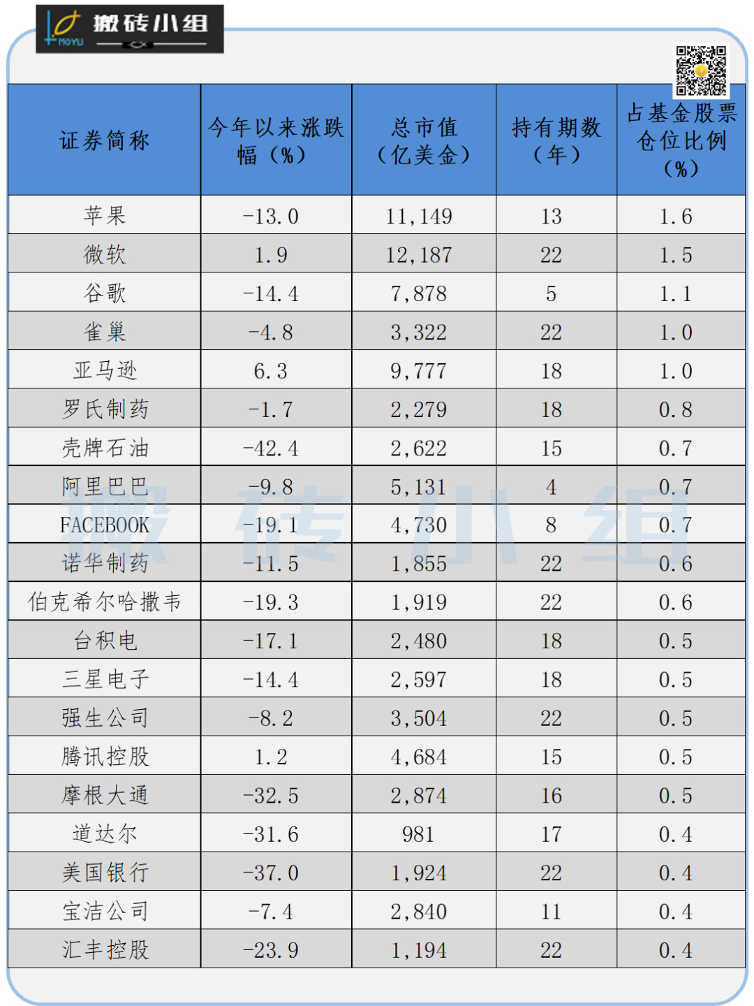 我们整理了一下GPFG去年底的前20大重仓股,大伙感受一下?: