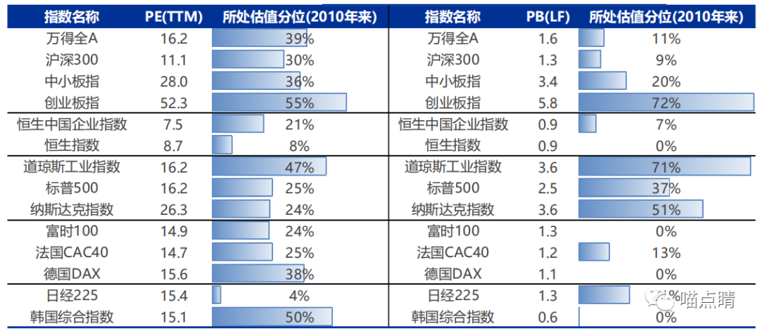 这图有两点值得注意的信息点,一是不少指数整体已经破净,从2010年以来的PB估值分位已经跌到了0%。。也就是近10年最低的PB位置,包括恒指、英国富时、德国DAX、韩国综指,其中韩综指PB已经是令人发指的0.6倍,真的是太惨了。。二是美股虽然跌了这么些,道指的估值仍然不算低。