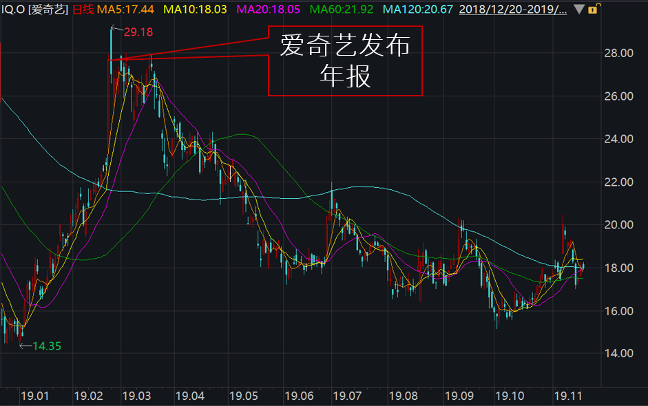 爱奇艺在2019年2月份交出一份漂亮的年报,2018年爱奇艺总收入达250亿人民币(约合36亿美元),同增44%;其中,2018Q4实现营收70.3亿元,同比增长46%,保持了高速的增长,公司股价一下就涨了21.7%。