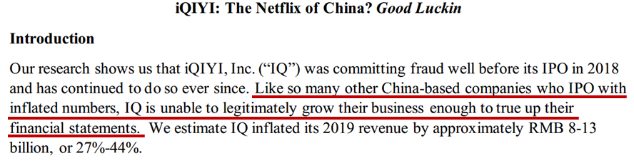 今天被Wolfpack做空爱奇艺的报告刷屏了。