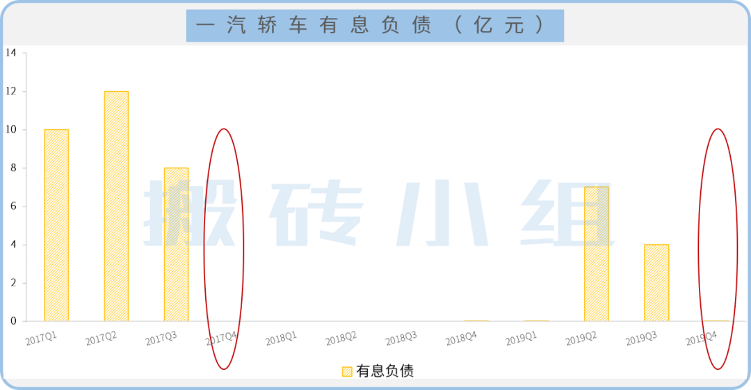 一翻细节,魔鬼都藏在了季报数据里,一汽轿车在2017Q1-2017Q3和2019Q2-2019Q3期间有大量有息负债,产生了对应的利息支出,到了年报,部分大额的短期借款就消失了,这样年报数据能好看点。