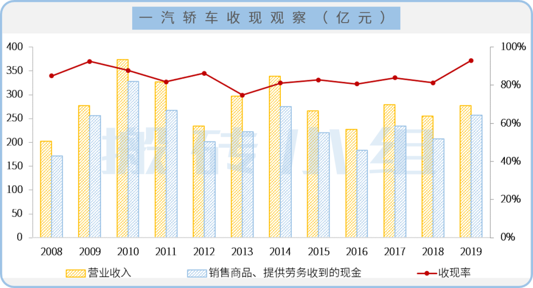 公司的经营收现长期处在90%以下,每年非现金收入差额都有波动,但是应收账款和应收票据的变动却没有很好的匹配,比较奇怪。