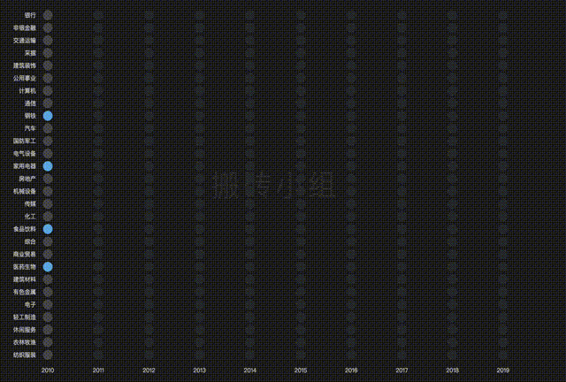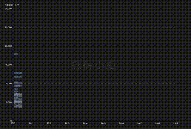 除了这张图,我们发现了很多好玩的事,比如每个行业的平均薪资排名变动。