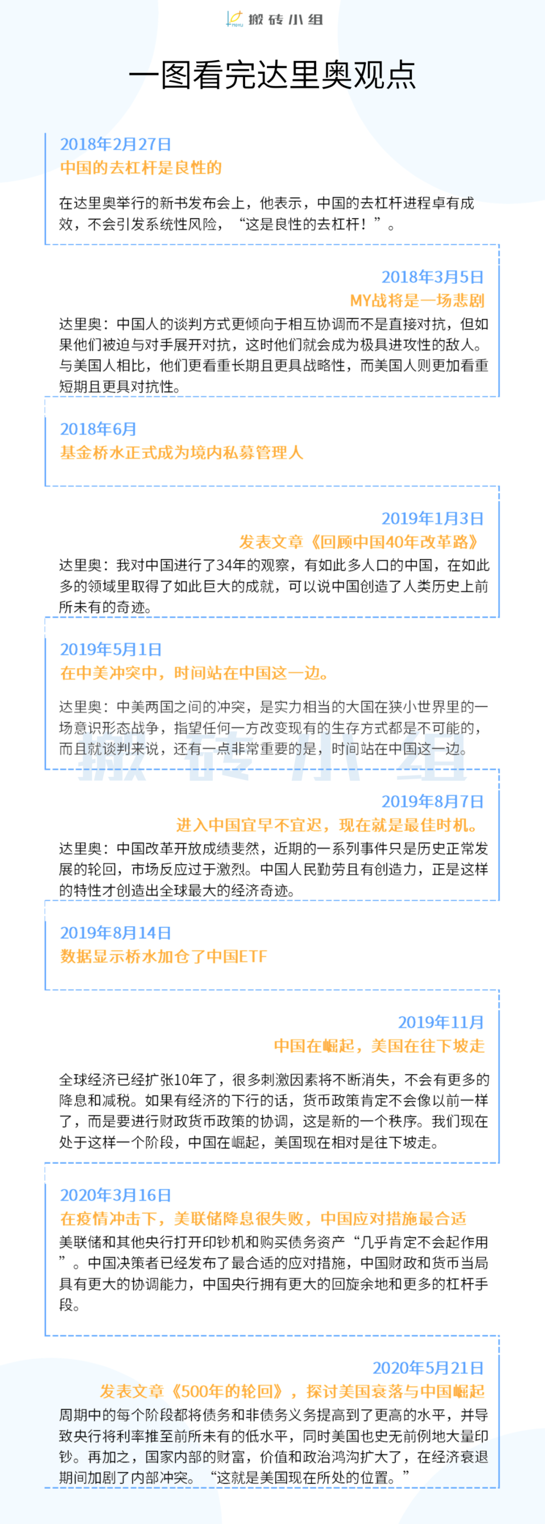 来看看达里奥一路以来对中国的观点,保持了惊人的一致: