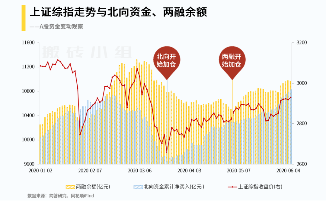 在这一波行情中,我们观察到了两个核心变化:北向资金和两融。