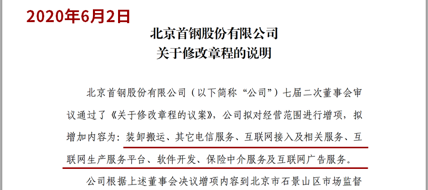 这个月,首钢股份公告修改了公司章程,经营范围大幅增加,添加了互联网接入及相关服务、互联网内容生产服务平台、软件开发、保险中介等。变化一发生,首钢股份的股价就出现了明显的异动,上市公司尚未出来解释,市场多有猜测,但是这个章程一看就是要搞互联网了啊,真是硬要朝科技靠了。