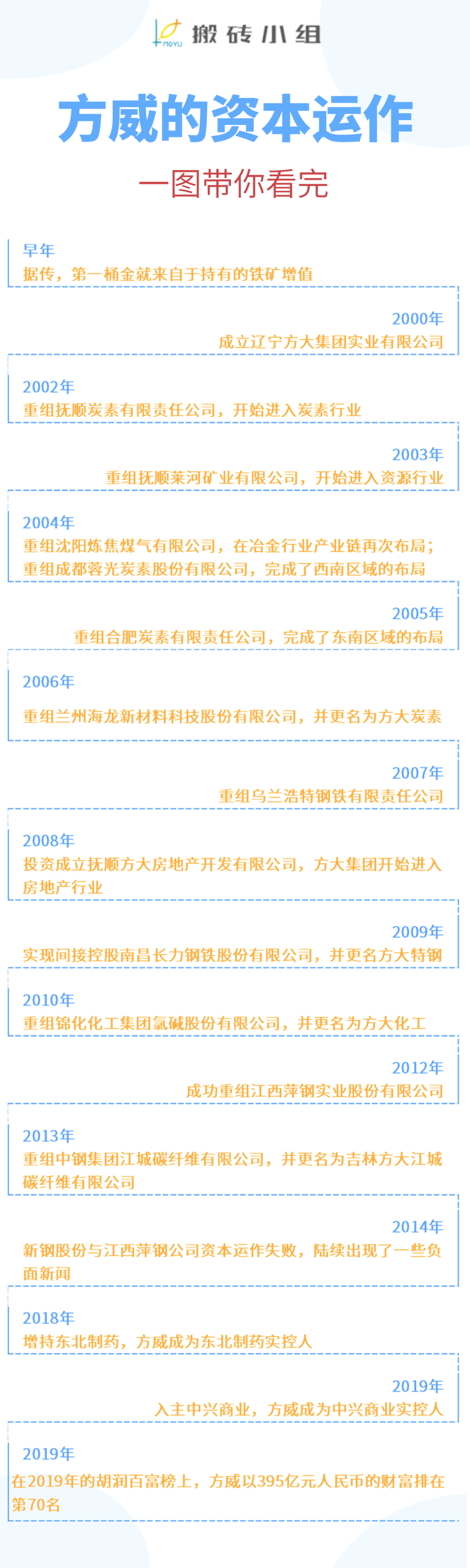 当然,一系列的资本运作也伴随着很多争议,尤其是涉及到国企改革的资产整合并购。不过风风雨雨当中,方威始终是带着自己的“方大系”一路前行到现在。