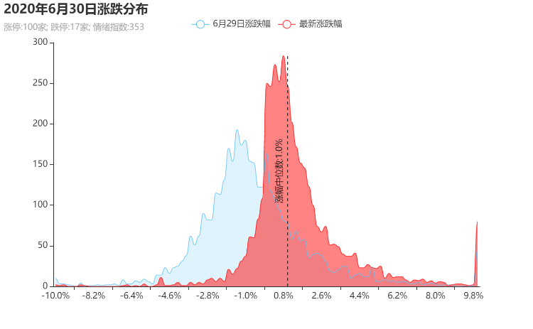 四年新高! 2020年6月30日 / 2020的上半年终于收官,最后一天市场用大涨来收尾非常舒服,创业板延续牛市格局,深证成指也创下了16年以来的新高,赚钱效应真的特别好~ 盘面上今天突突的是科技和券商,其中光大的涨停和东财的反包非常提振人气,资金并没有因为昨天的消息落地跑路,看来资金是真的是冲着指数行情而来。 今天比较特殊的是北上交易暂停,盘面上的交易全是内资的行为,我感觉游资和机构今天都非常用力。 从涨停板上看,今天有100家涨停,而且总金额榜排名前面的都大涨,这是情绪非常好的特征,机构游资共振做多。 机构重仓股今天很多也大涨,不过考虑到一些私募和险资都有半年度业绩考核,可能会有做净值行为的影响,所以对这些机构重仓大涨的票明天还要观察一下。 市场现在趋势非常好,今天大涨没有放量只是因为北上资金没有参与进来,等北上恢复以后要重点观察市场是否会出现合力向上继续突突,现在是难得的好光景,应该积极参与。 ————— 科技股今天大涨是因为昨天歌尔中期的业绩预告超预期,这又是一个净利润断层的典型案例,净利润断层这个选股模式真挺有用的,在财报季要重点关注。 从歌尔的业绩好,其实可以联想到整个消费电子板块的业绩应该都不差。在疫情刚爆发的那段时间市场一直在担心消费电子的业绩是否会迅速下滑,但事实证明这些上市公司作为行业龙头基本都没有受到影响。 在知识星球的周度策略里有谈到比较关注消费电子,因为我在假期期间出的经济数据中,看到计算机、通信和其他电子这个行业的利润恢复已经大幅增长,从产业的信息了解到订单也是非常好,中期的业绩应该都挺不错。 当前市场对于消费电子方向是只抡蓝思、立讯、歌尔这几个大市值龙头,但是还有很多公司趴在下面没涨多少,风险偏好比较低的可以考虑去挖掘一些低位且业绩确定的个股。 ————— 最近2年北上资金持续流入A股是大趋势,从中长期看外资还会继续大幅流入,而且他们重点买入的个股很多都会锁仓走成长牛趋势,所以跟踪北上动向就是比较重要的一个观察市场的角度了。 最近我拉了个北上持有市值前50的公司,做成了个“北上50”组合。从下半年开始,每天我会持续对这个组合里的公司进行跟踪,包括但不限于资金、公告、研报、调研、电话会议的解读,尽量对北上资金的行为做更好的跟踪。 今天看了下上周三和3月底“北上50”组合里的北上持股变化,发现了确实有很多票北上在大幅加仓,公众号回复“北上50”就可以获得清单啦,回复之前记得点赞点再看! ———— 上半年走得最牛的就是创业板,大涨35.6%跑赢了绝大多数基金,但上证指数还略跌2%,主要是传统板块的拖累导致。 不管上半年涨跌如何,明天就算翻篇啦,祝大伙儿下半年账户飞飞! 数据跟踪 【ETF】 【数据跟踪】 涨停100家,跌停17家,情绪不错。 涨多跌少,涨幅中位数1.0%。 最近有小伙伴反映收不到推送,其实是因为公众号改了推送规则,现在必须加星标,多点赞+在看,才能第一时间收到推送! 今天继续发红包,快点击阅读原文!获取口令后在公众号回复,即可参与抽奖!精选评论也有红包,在看越多红包越大喔~ 点赞+在看,涨停左右转! 上一篇 下一篇