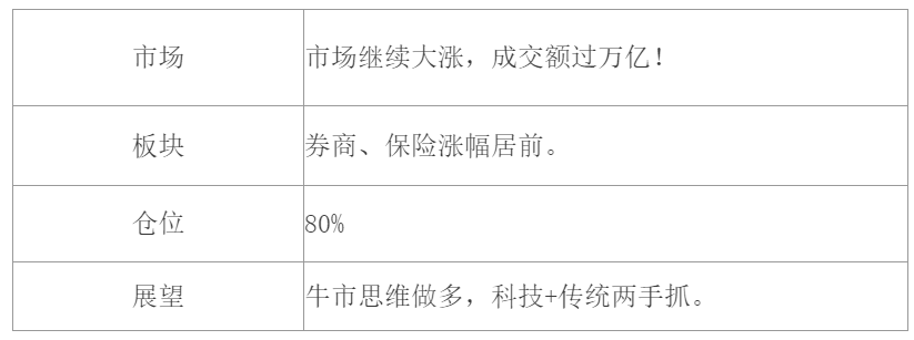 最近的复盘文章里有很多牛市的字眼,因为我真感觉现在就是牛市状态,这种行情是宁可做错不可错过。市场当前除了涨得有点快以外,没有任何问题,现在就该找到方向持股待涨!
