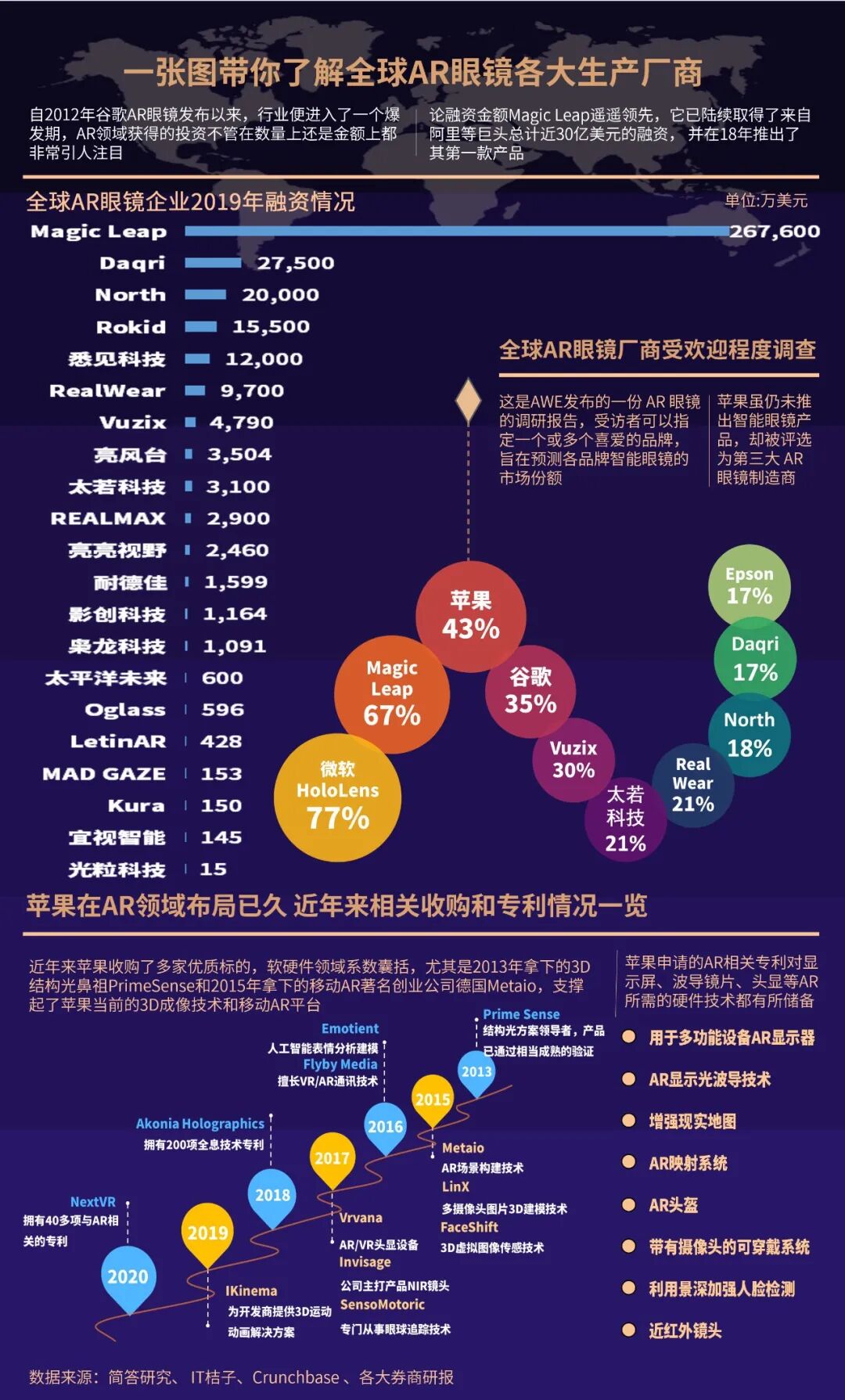 目前行业里已经是微软、谷歌、苹果、三星、华为等科技巨头的天下了,观察这些巨头正在做的事,就能看到AR行业未来发展的风向标。