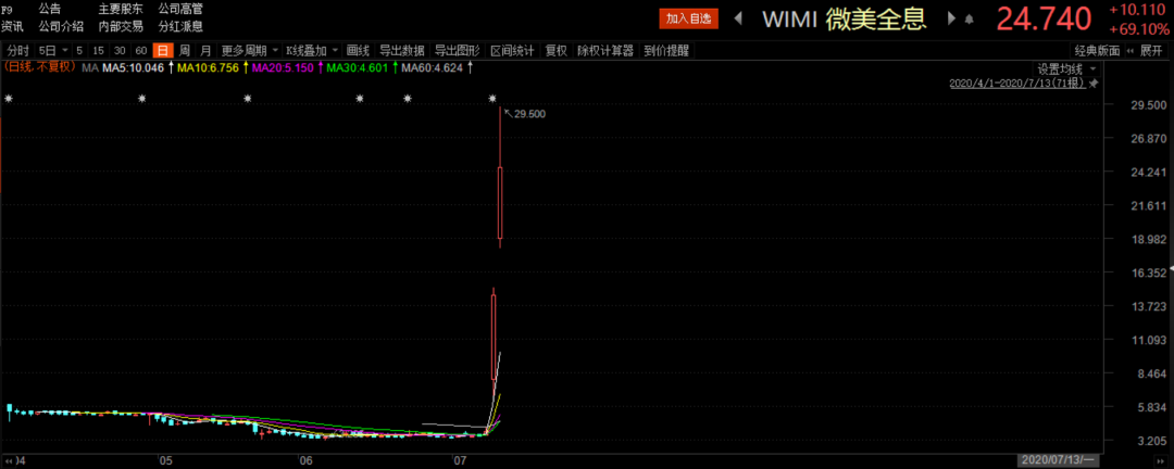 最近在美国上市的“全息AR第一股”——微美全息涨势惊人,三个交易日涨了6倍多。