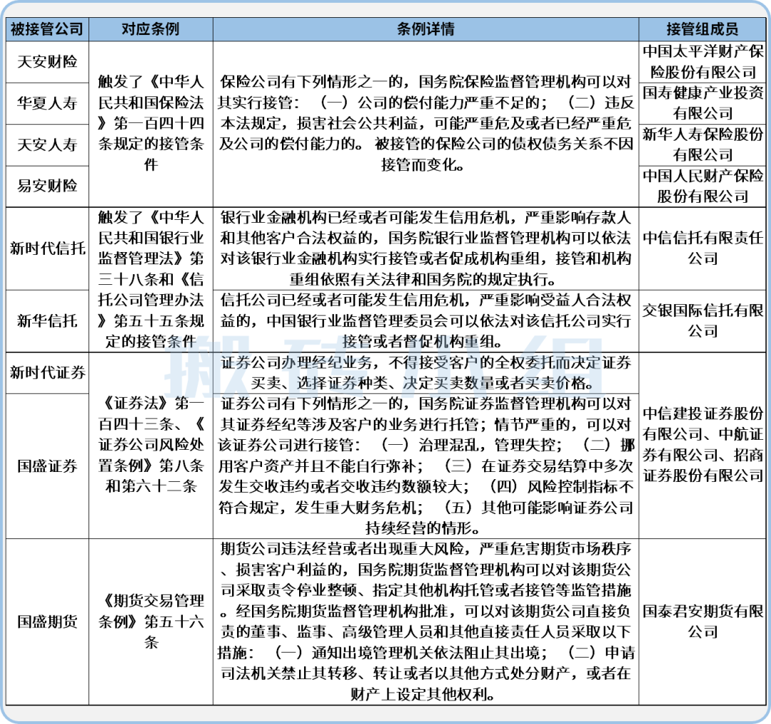要说提前化解金融风险,这是肯定的,因为从官方公告的内容来看,这次的大规模接管,基本是离不开金融风险处置这个关键词的,大家一看就懂:
