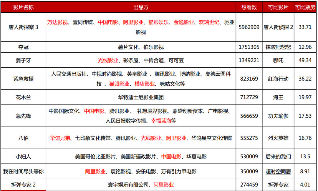 最后,对于所有的影视公司来说,爆款电影始终是一个重要的事件催化,东方证券按照观影意愿的热度,对各大公司储备的热门影片做了个统计,这些影片的上线排期、口碑票房是下半年影视行业关注的重点。