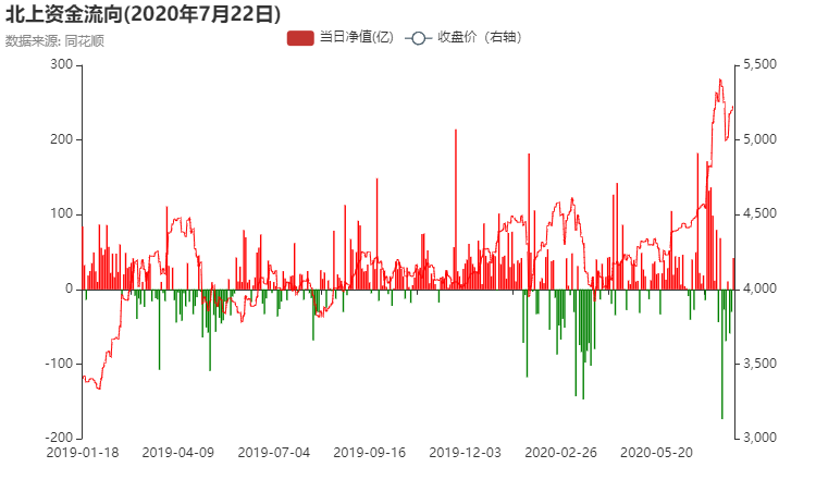 北上资金经过一段时间流出以后今天开始流入,但主要流入的方向是深股通,沪股通这边还是流出的,资金的偏向比较明确。