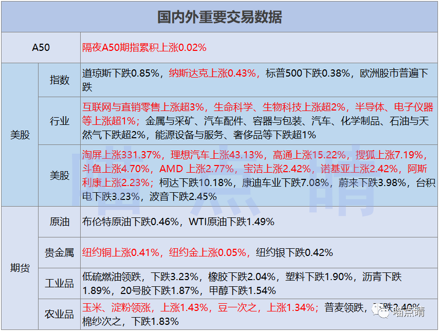 隔夜美股在超级惨淡的2季度GDP数据影响下先抑后扬,好在纳指妙手回春,尾盘带领美股展开了反攻。可欧洲股市就没那么幸运了,一片惨绿,三傻又被美国给演了。。个股方面首日上市的理想汽车大涨,市值已经逼近蔚来。期货方面,工业品整体跌幅较大。