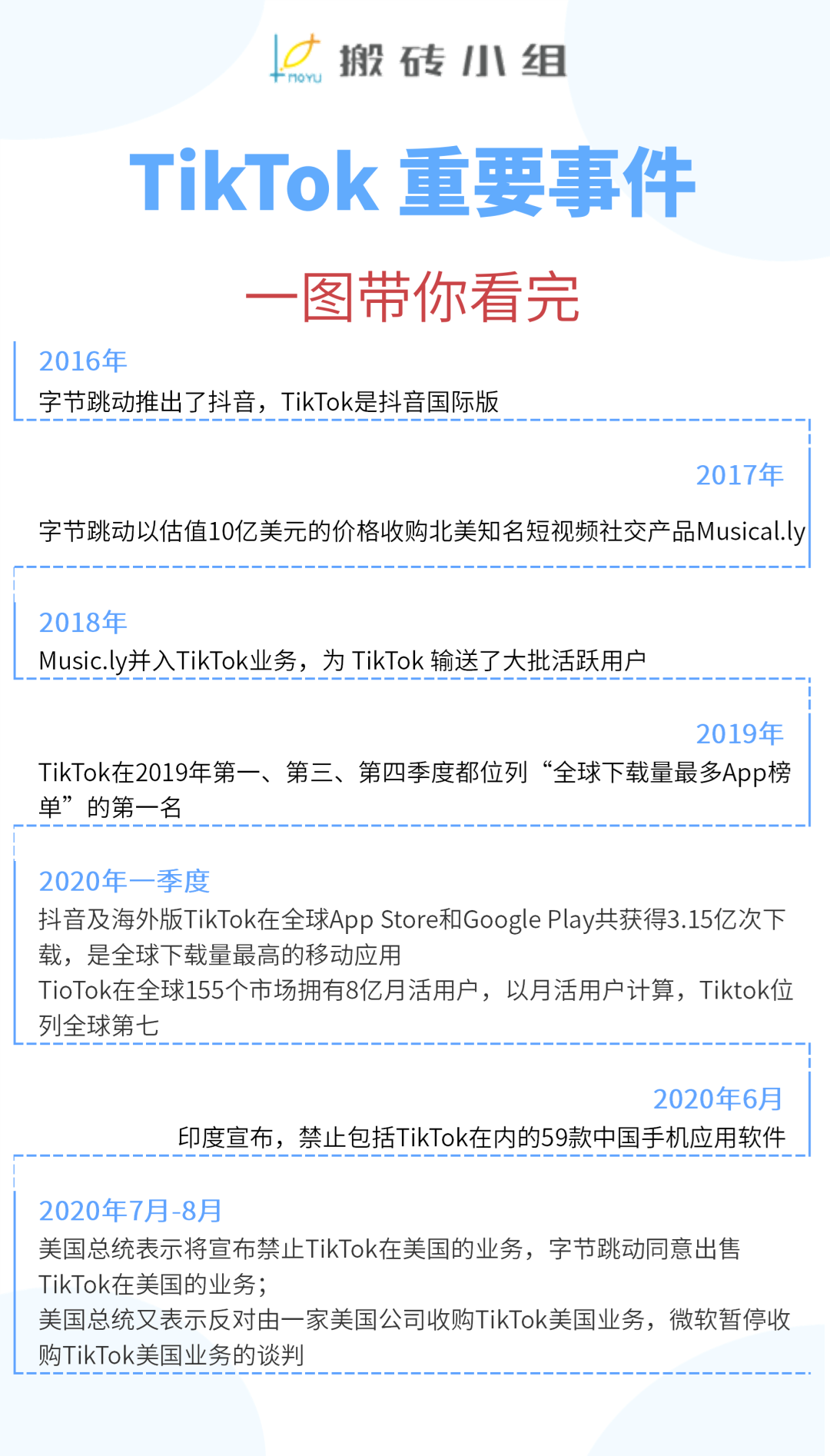 Tiktok是抖音的国际版,字节跳动于2016年推出抖音,2017年开始在国际上大规模推广Tiktok,并于2017年底收购了北美知名短视频社交产品Musical.ly,将其用户合并到了Tiktok当中。