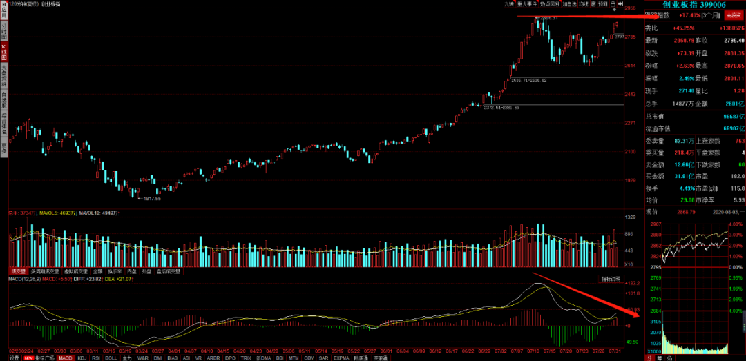 盘后看今天是放量上涨,而且上涨幅度比较大,这对多头是比较有利的,如果谨慎一些仍然把这里看做反弹的话,到现在反弹空间已经充足,指数可能出现120分钟的背离,如果不能继续放量向上突破,那还是要注意追高风险。当然,如果放量大阳突破前高,那就应该积极看多做多。