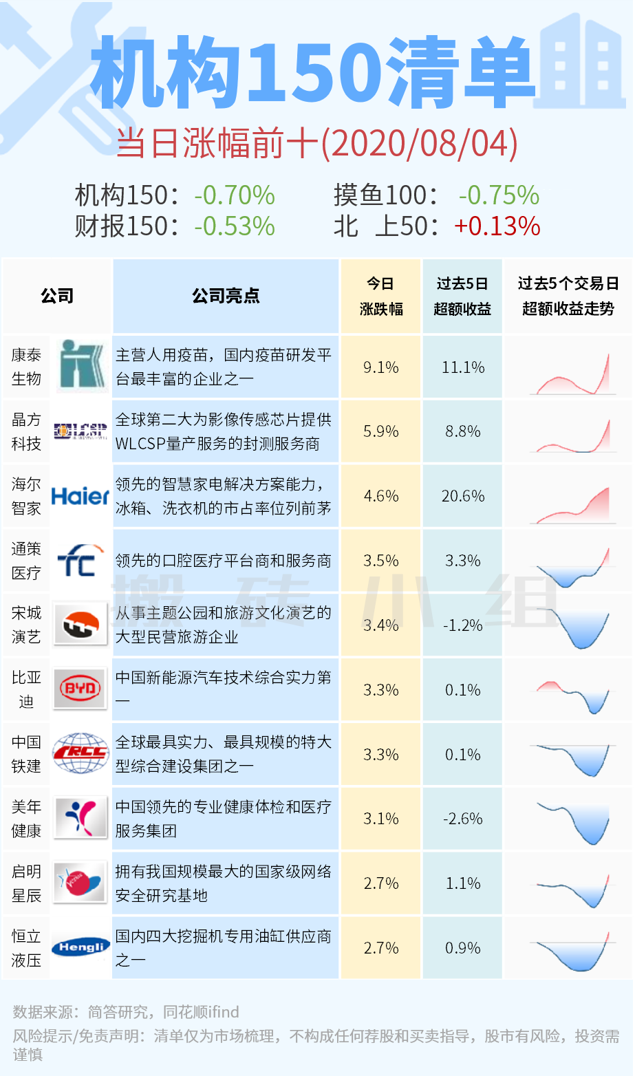 今天有个有趣的现象,前排的公司超额收益较高,前排三家公司又刚好分别代表了医药里的疫苗、科技里的芯片和有个股逻辑的家电,后排公司暂时没啥累计超额收益,板块轮动的效应比较明显。