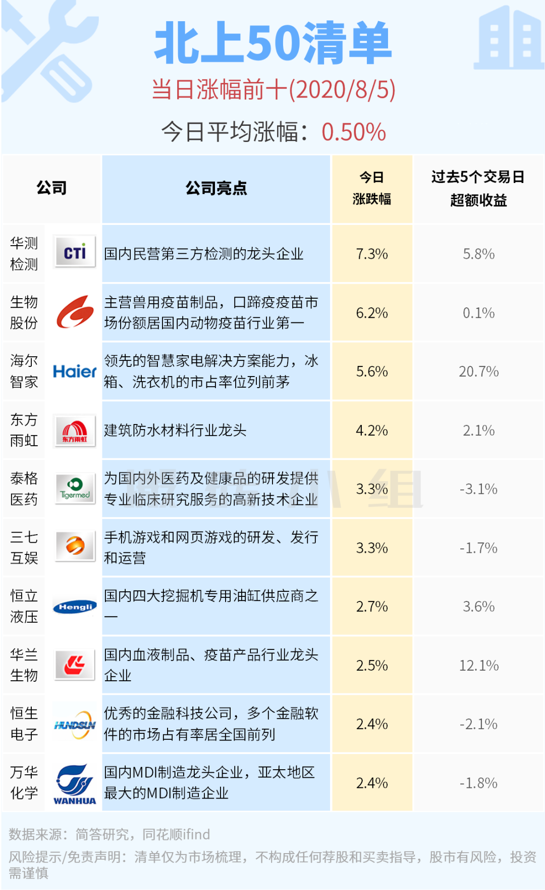 【北上50涨幅前10】