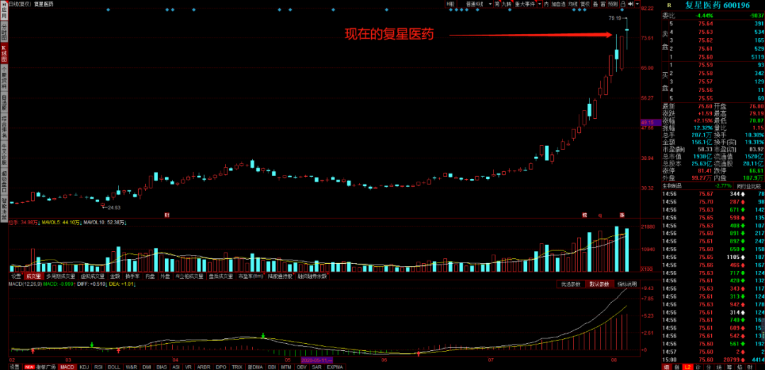 而且从盘面上来看情绪已经到了高潮,复星医药能一天成交150亿,这跟当年华天科技的顶部很像,我猜后面又有一大批人要留下来买单了。