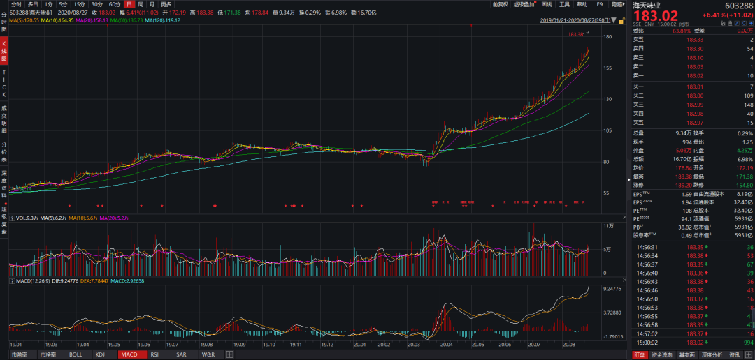 北上50里今天涨幅第一的是海天,这个图真的是有点吓人了,从估值层面上来看真不知道什么时候是个头。