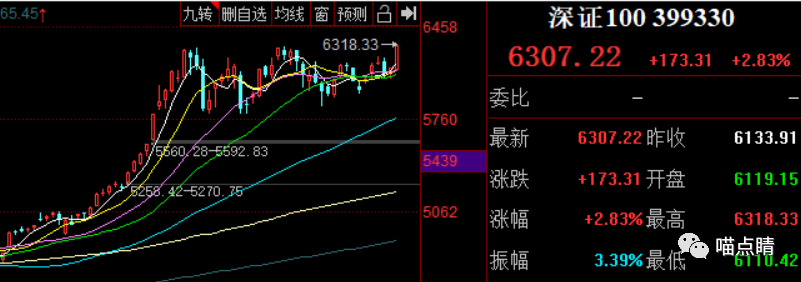 2、上周五市场表现的不错,一根中阳线几乎扭转了之前弱势震荡的格局,各大关键指数的形态也变得更具进攻性,深证100甚至已经创了阶段新高,创业板也站上了2720的关键点位。本周多头若是能进一步延续火力,或将确立新一轮上涨态势,非常关键。
