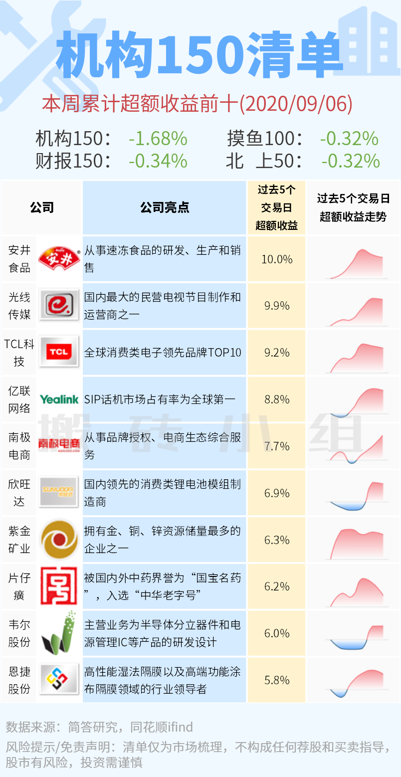 本周【机构150】涨幅前十观察: