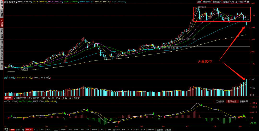 并且今天创业板放了历史天量,在亏钱效应显著的情况下,市场的成交一定会进入到一个中期缩小的阶段,简单来说就是进入缩量阴跌,创业板想缓过来真的很有难度了。