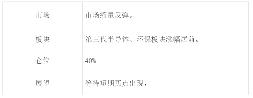 对于当前市场我偏谨慎,所以暂时是以反弹的态度来看待的。周五和今天的上涨从反弹的角度来看已经比较充分,这里我选择等市场走出来再说。