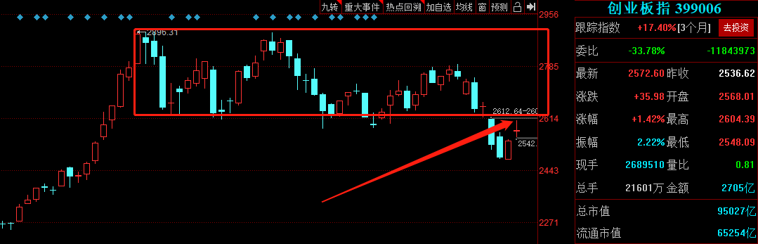 上周五的复盘里我把创业板上面的缺口认定为短线压力,只有收复上去才能表明多空是平衡,否则都得认为是空头暂时有优势。今天创业板上午反弹到了箱体的下沿,也就是缺口的位置就开始回落,说明这个压力还是比较有效的。